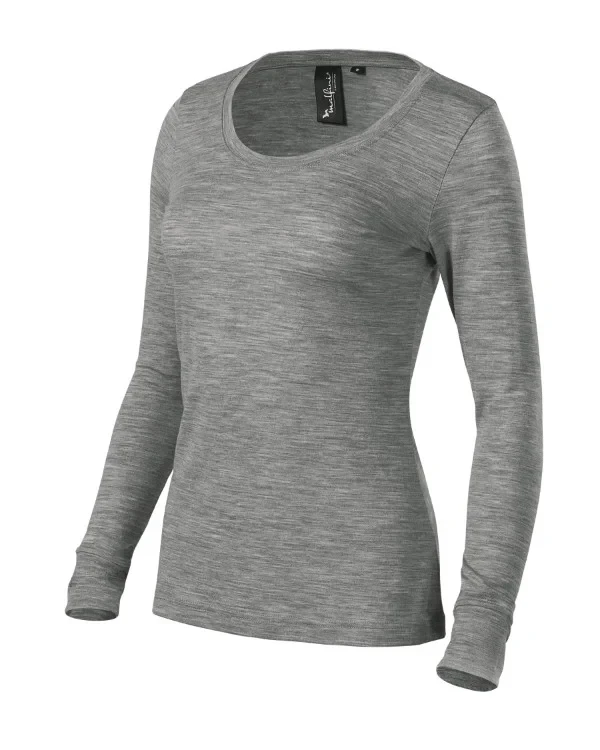 extra jemná merino vlna nemačkavý a vysoce prodyšný materiál termoregulační a antibakteriální vlastnosti schopnost odvodu vlhkosti a absorpce zápachu přiléhavý střih s bočními švy hlubší kulatý výstřih úzký lem průkrčníku z vrchového materiálu vnitřní část průkrčníku začištěna páskou z vrchového materiálu zpevnění ramenních švů páskou dlouhé rukávy s manžetou doporučeno sušit ve vodorovné poloze