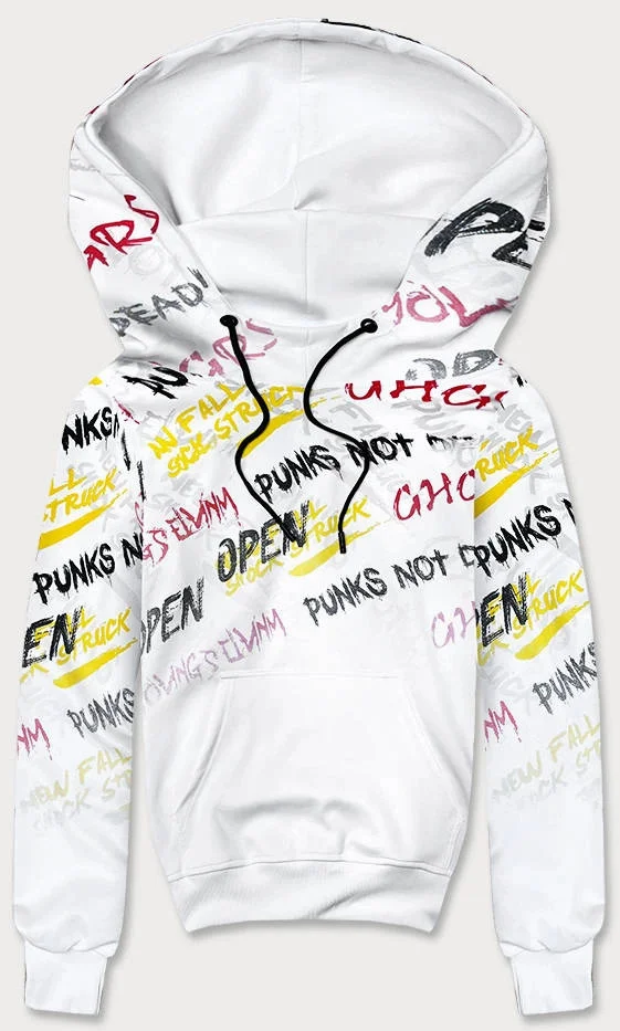 Bílá pánská "klokaní" mikina s potiskem (8B997-1)