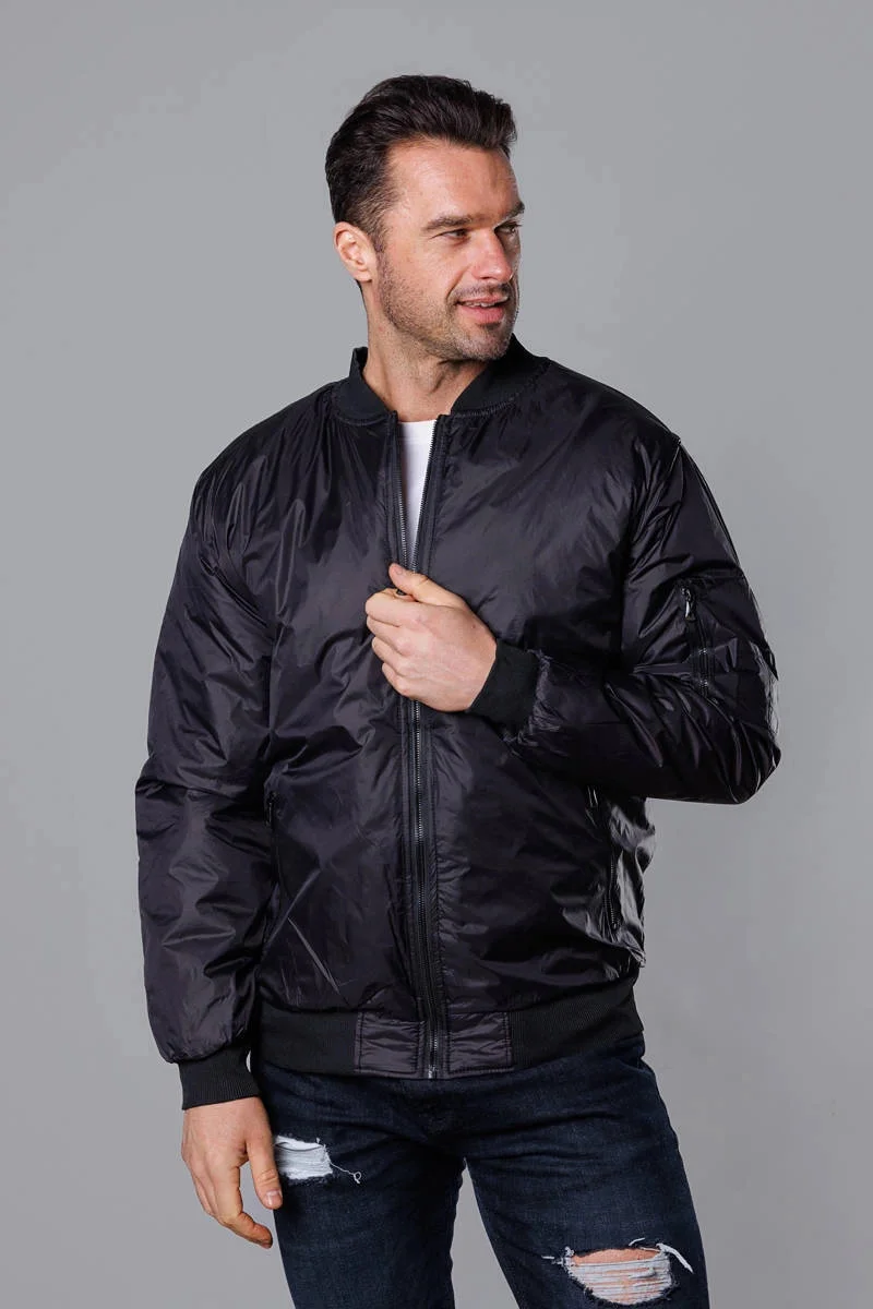 Černá pánská bunda typu "bomber" s prošívanou podšívkou (AK95-1)