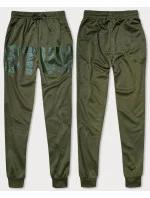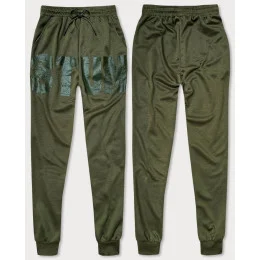 Pánské teplákové kalhoty v khaki barvě s potiskem (8K191)