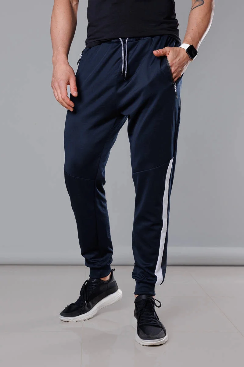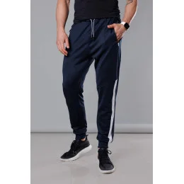 Tmavě modro-bílé pánské teplákové kalhoty se vsadkami (8K172)