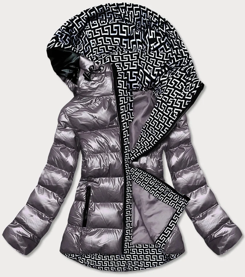 Šedá dámská metalická bunda s kapucí (xw808x)