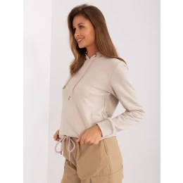 Béžová mikina s kapucí a stahovací šňůrkou .