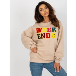 Béžová dámská mikina s dlouhým rukávem a kapucí .