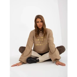 Tmavě béžová mikina s potiskem a rolákem .