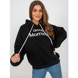 Černá oversize mikina s kapucí a nápisem .