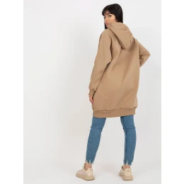 Tmavě béžová dlouhá mikina basic s kapucí .