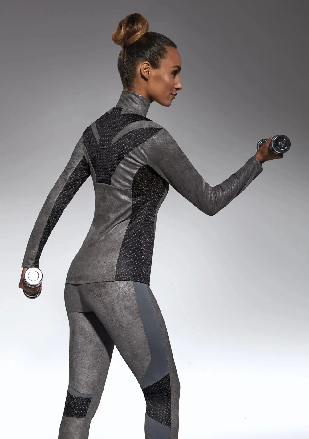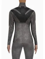 s vysokým stojáčkem, se zapínáním na zip. Flexibilní, prodyšný a rychleschnoucí materiál. Rozdílný materiál vytváří na zádech velice zajímavý geometrický prvek.