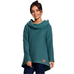 Mikina s ležérním asymetrickým střihem a kapsami. Ideální pro chladnější období. Volný komín v přední části a prostorná kapuce v zadní části vám zajistí teplo a pohodlí. Další výhodou je oboustranný úplet, který je extrémně měkký a hřejivý a má různé struktury.