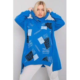 Tmavě modrá mikina s potiskem a aplikací. Mikina má kapuci a dlouhé rukávy.