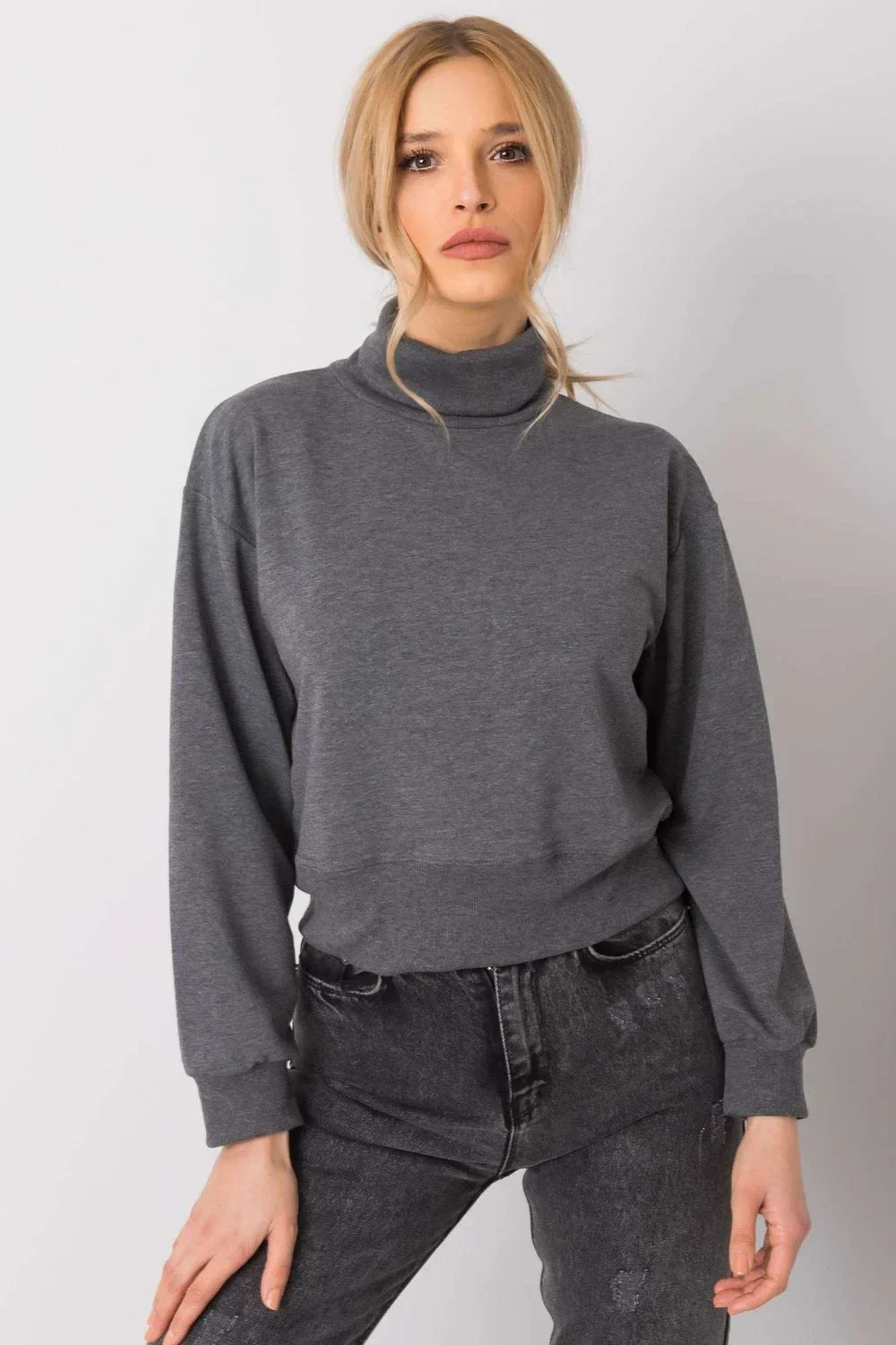 Dámská mikina rovného střihu s dlouhými rukávy a rolákem.