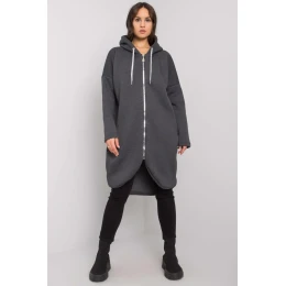 Dámská mikina s prodlouženým střihem a dlouhými rukávy. Mikina má asymetrickou spodní část, zapínání na zip a kapuci. Kapsy na zip po stranách.