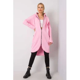 Mikina s prodlouženým střihem a zapínáním na zip. Mikina s dlouhým rukávem a kapucí. Kapsy na bocích.