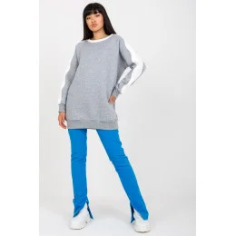 Mikina prodlouženého střihu s dlouhými rukávy a lodičkovým výstřihem. Rukávy s kontrastními pruhy.