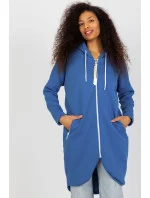 Dámská mikina s prodlouženým střihem, dlouhými rukávy a kapucí. Mikina se zapíná na zip a po stranách má kapsy na zip.