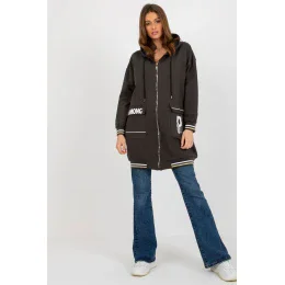 Dámská mikina prodlouženého střihu s dlouhými rukávy a kapucí. Mikina má zapínání na zip a velké nakládané kapsy na přední straně.