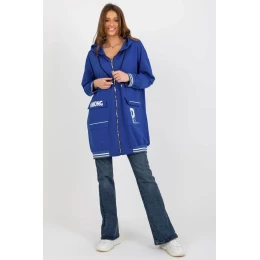 Dámská mikina prodlouženého střihu s dlouhými rukávy a kapucí. Mikina má zapínání na zip a velké nakládané kapsy na přední straně.