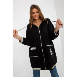 Dámská mikina prodlouženého střihu s dlouhými rukávy a kapucí. Mikina má zapínání na zip a velké nakládané kapsy na přední straně.
