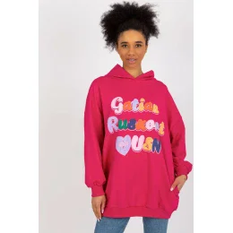 Dámská mikina rovného střihu s dlouhými rukávy a kapucí. Kapsy na bocích. Ozdobný nápis na přední straně.