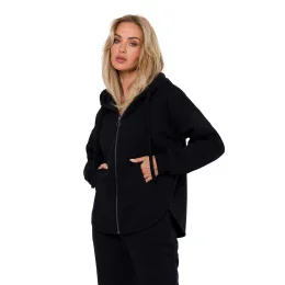 Dámská pletená mikina se zapínáním na zip. Halenka s dlouhými rukávy, mírně prodloužená záda. Klokaní kapsa na přední straně. Navrženo a ušito v Polsku.