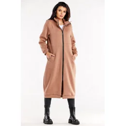 Dlouhá mikina na zip s dlouhými rukávy a vysokým límcem. Mikina má nakládané kapsy. Mikina má v pase tunýlek se stahovací šňůrkou na zádech.