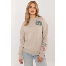 Pohodlná a stylová dámská mikina, ideální pro každodenní nošení. Je vyrobena z měkké a odolné kombinace bavlny a polyesteru a poskytuje pohodlné nošení a příjemné teplo v chladnějších dnech. Díky ležérnímu stylu se mikina skvěle hodí k různým každodenním outfitům. Model má standardní délku, dlouhé rukávy a klasický kulatý výstřih, což z něj činí univerzální volbu. Originální potisky na přední a zadní straně a na rukávech dodávají mikině jedinečný charakter. Absence zapínání podtrhuje pohodlný a volný střih. Ideální volba pro ženy, které si cení pohodlí a módního vzhledu v ležérních kombinacích. Skvěle se hodí k džínům, legínám nebo teplákům.
