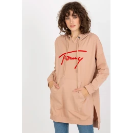 Dlouhá dámská mikina s casual charakterem je ideální volbou na každý den, spojující pohodlí s minimalistickým stylem. Model se vyznačuje hladkým, dominujícím vzorem, který dodává univerzálnost a umožňuje snadné sladění mikiny s různými stylizacemi. Vyrobená z vysoké kvality směsi bavlny, polyesteru a elastanu, poskytuje pohodlí, trvanlivost a jemné přizpůsobení. Mikina má prodloužený střih s jemnými rozparky po bocích, které dodávají lehkost a módní vzhled. Dlouhý rukáv a praktická kapuce zajišťují ochranu a pohodlí v chladnějších dnech. Na přední straně je aplikace, která představuje stylový akcent, a funkční kapsa typu klokan, ideální na drobnosti nebo ohřátí rukou. Jedná se o nezbytný prvek šatníku pro ženy, které oceňují styl a praktičnost.