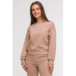Stylový a ženský svetr s volným, lehce oversized střih je návrh, který spojuje pohodlí s decentní elegancí. Navržený a ušitý v Polsku, vyniká unikátním zády, otevřená záda s hlubokým přesýpacím výstřihem dodávají celku výjimečný charakter, aniž by se ztratil komfort. Přední díl svetru je držen v klasickém stylu s výstřihem pod krk, zatímco dolní lem lehce přizpůsobuje střih v pasu, zdůrazňující siluetu přesto, že je volnější. Dlouhé rukávy s pohodlnými lemiky přidávají funkčnost a volnost. Model se skvěle hodí do každodenních stylizací, je to ležérní s nádechem ženské elegance. Zejména doporučeno pro postavu typu jablko, zdůraznění pasu a otevřený záda vytvářejí efekt lehkosti a rovnováhy.