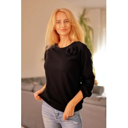 Bavlněná mikina Similan spojuje pohodlí s elegancí. Mikinu v klasickém lehce oversized střihu zdobí růže vyrobená z té samé bavlněné látky. Růže má zapínání, díky kterému může, ale nemusí být součástí outfitu. Rukávy a spodní lem mikiny jsou zakončeny manžetami. Model Similan se hodí k teplákovým kalhotám, džínám nebo sukní.