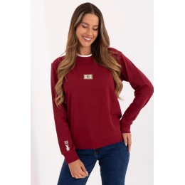 Casual dámská mikina vyrobena z měkké směsi bavlny a polyesteru, spojující pohodlí s každodenním stylem. Klasický kulatý výstřih a dlouhé rukávy zajistí pohodlné nošení, zatímco standardní délka dělá mikinu ideální pro různé stylizace. Model s hladkou strukturou zdobí decentní nášivky na přední straně a vyšívání na pravém rukávu, které dávají celku moderní a stylový charakter. Skvělá na každodenní, neformální příležitosti.