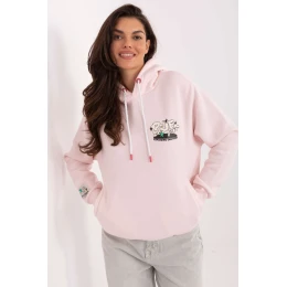 Dámská mikina s kapucí v casual stylu, ideální na každodenní příležitosti. Vyrobená z směsi bavlny a polyesteru, poskytuje pohodlí a příjemné teplo. Model standardní délky s dlouhými rukávy má kapuci s šňůrkami k nastavení. Na pravém rukávu je nášivka, a potisk zdobí přední část v malé verzi a záda ve velké verzi. Praktické kapsy umožňují schovat drobnosti, a hladký materiál způsobuje, že se mikina snadno kombinuje s různými stylizacemi.