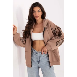 Dámská mikina s kapucí v casual stylu, ideální na každodenní příležitosti. Vyrobená z vysoce kvalitní bavlny s přídavkem elastanu, poskytuje pohodlí a pružnost. Standardní délka s dlouhými rukávy, na kterých jsou dekorativní vyšívání. Mikina má kapuci, zapíná se na zip a praktické kapsy vpředu umožňují pohodlně schovat drobnosti. Lehce podšitá, skvěle se hodí do casual stylizací.