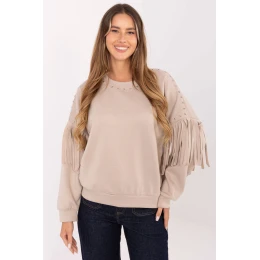 Dámská volná blůza v hladkém provedení je stylovým návrhem na každý den. Ušitý z měkké směsi viskózy a polyesteru, poskytuje pohodlí a pohodlí po celý den. Klasický, kulatý výstřih byl zdoben jemnými nýty, které dávají celku moderní charakter. Dlouhý rukáv s efektním lemováním a aplikací nýtů činí blůzu výraznou v každodenních stylizacích. Standardní délka a absenci zapínání ji činí praktickým, a zároveň neotřelým kouskem šatníku.