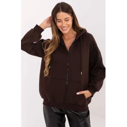 Dámská mikina s kapucí v casual stylu, ideální na každodenní příležitosti. Vyrobená z vysoká kvality bavlny s přídavkem elastanu, poskytuje pohodlí a pružnost. Model má standardní délku s dlouhými rukávy, na kterých jsou dekorativní vyšívané detaily. Mikina má kapuci, zapíná se na zip a praktické kapsy vpředu umožňují pohodlně schovat drobnosti. Lehce tepelně izolovaná, skvěle se hodí do casual stylizací.