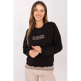 Moderní dámská mikina ve stylu casual je ideální kombinací pohodlí a módního designu. Vyrobená z měkké a elastické směsi bavlny a elastanu poskytuje pohodlí po celý den. Model střední délky s dlouhými rukávy má kulatý výstřih a není zapínán, což zdůrazňuje jeho volný charakter. Přední stranu mikiny zdobí vyšívané nápisy, které jí dodávají originální vzhled, a kontrastní vložka na spodním okraji je módním detail, který tento model odlišuje od klasických střihů. Jedná se o skvělý návrh pro ženy, které oceňují pohodlí, styl a decentní ozdoby ve svých každodenních outfitech.