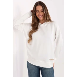 Elegantní dámská mikina s ležérním charakterem, ideální na každý den. Vyrobená z příjemné směsi viskózy, polyesteru a elastanu, poskytuje pohodlí nošení, pružnost a odolnost. Model s standardní délkou, dlouhým rukávem a kapucí je klasikou v moderním provedení. Hladký materiál zajišťuje univerzálnost a snadnou stylizaci, zatímco ozdobné nášivky na spodní části a na kapuci dodávají mikině originální, moderní nádech. Absence zapínání zaručuje volnost a pohodlí při nošení. Ideální k džínům, legínám nebo teplákovým kalhotám, skvělý návrh na každodenní, volné stylizace.