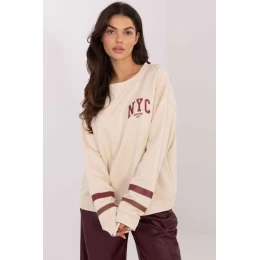 Dámský svetr s volným střihem je casual must-have, který kombinuje pohodlí s moderním stylem. Vyrobený z kombinace bavlny a polyesteru, poskytuje měkkost, pohodlí nošení a odolnost materiálu. Model s dlouhým rukávem a kulatým výstřihem se vyznačuje kontrastními pruhy na rukávech a potisky a nápisy na přední a zadní straně, které mu dodávají charakter a moderní výraz. Standardní délka dělá z tohoto svetru skvělý kousek pro kombinaci s džíny, legíny nebo sukněmi v každodenních, volných stylizacích.