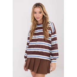 Elegantní dámská mikina s ležérním charakterem, ideální na každý den. Vyznačuje se módním pruhovaným vzorem, který jí dodává moderní a univerzální vzhled. Vyrobená z příjemné viskózy s přídavkem elastanu, díky čemuž je měkká, elastická a pohodlná na nošení po celý den. Model má standardní délku, dlouhý rukáv a kulatý výstřih, který se klasicky usadí na postavě. Mikina nemá zapínání, co zdůrazňuje její volný styl a pohodlí nošení. Další výhodou je dekorativní nášivka na rukávu, která dodává celku originální charakter. Skvěle se hodí do každodenních outfitů, jak s džíny, tak s látkovými kalhoty nebo legíny.