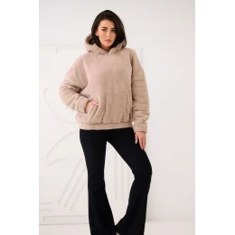 Dámská mikina s roztomilým motivem medvídka je ideální volbou pro každodenní stylizace. Vyrobená z příjemného na dotek materiálu s dominancí polyesteru, poskytuje pohodlí a volnost pohybu. Model s standardní délkou, dlouhým rukávem a praktickou kapucí skvěle poslouží v chladnějších dnech. Mikina nemá zapínání, co jí dodává sportovní a pohodlný charakter. Na přední straně je funkční kapsa typu klokánek, ideální pro drobnosti nebo zahřátí rukou. Hladký vzor umožňuje mikinu jednoduše sladit s mnoha každodenními outfitmi, ať už s džíny nebo legíny.