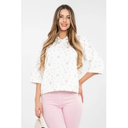 Casual dámská mikina standardní délky je ideální volbou na každý den. Vyniká ženským květinovým potiskem, který dodává outfitu svěžest a lehkost. Model s 3/4 rukávem se skvěle hodí na přechodné období roku, poskytuje pohodlí a volnost pohybu. Mikina nemá kapuci ani zapínání, díky čemuž má jednoduchý, univerzální střih, který snadno sladíte s mnoha outfitovými styly, jak s džíny, tak i sukní. Vyrobená z kombinace polyesteru, viskózy a elastanu, spojuje odolnost s měkkostí a pružností materiálu, což zaručuje pohodlí nošení po celý den.