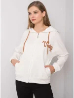 M761 Mikina s kapucí na zip a klokaní kapsou - barva ecru