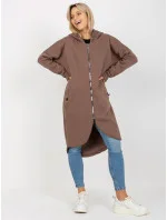 Hnědá rozepínací dlouhá základní mikina s kapucí Tina RUE PARIS .