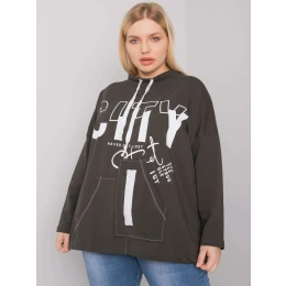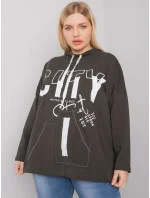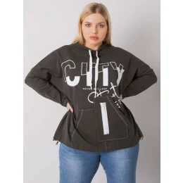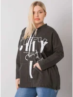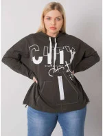 Tmavá khaki mikina plus size s potiskem a kapsami.