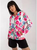 Bílo-růžová květinová velurová halenka značky RUE PARIS .
