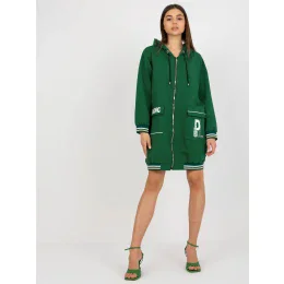 Tmavě zelená dlouhá mikina na zip s kapucí .