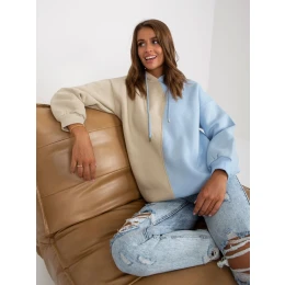 Béžová a modrá dámská základní mikina s kapucí od značky RUE PARIS .