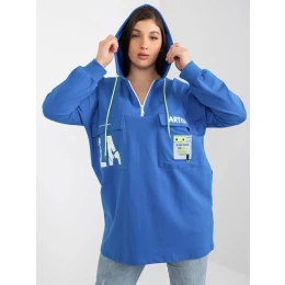 Tmavě modrá delší plus size mikina s nápisy .