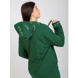 Tmavě zelená rozepínací mikina plus size s nápisem .