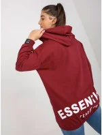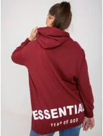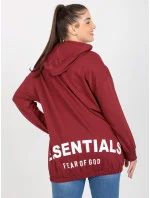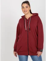 Bordó rozepínací plus size mikina s potiskem na zádech .