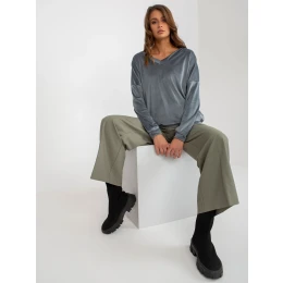Špinavě modrá velurová viskózová mikina bez kapuce .